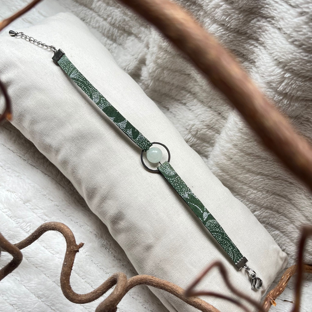 Bracelet Aura#1 - tissu vert, aventurine, acier inox