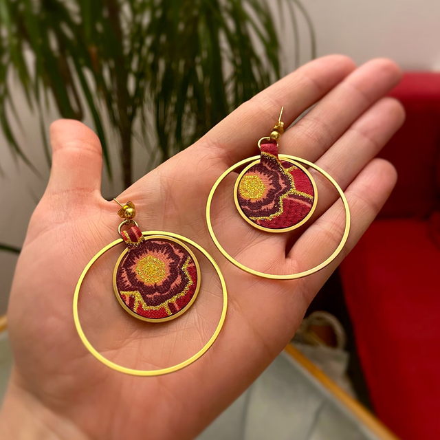 Duo Cercles - Boucles d'oreilles en tissu wax rouge et doré