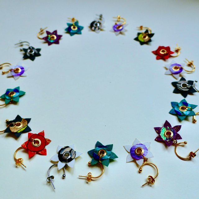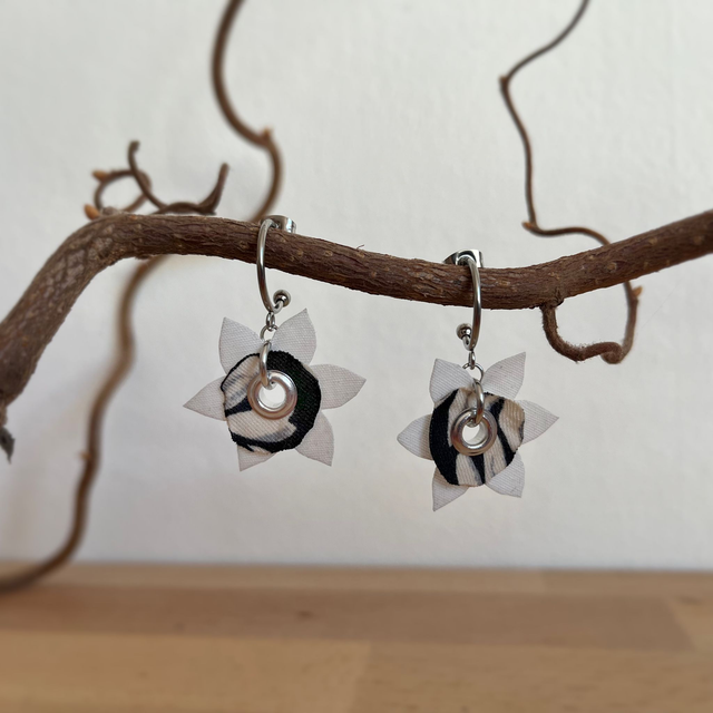 Boucles d'oreilles "Nymphéas Blanches" en tissu upcyclé