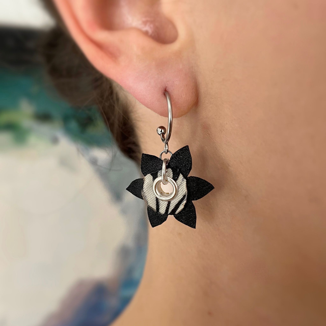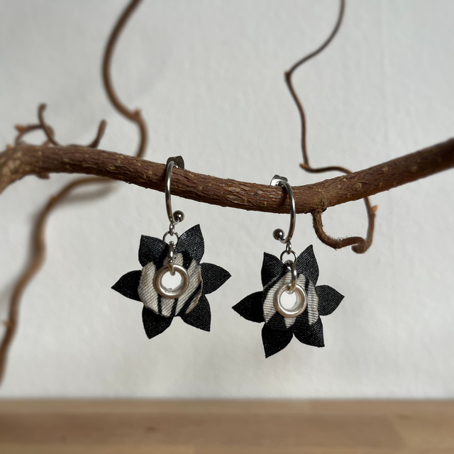 Boucles d'oreilles "Nymphéas Noires" en tissu upcyclé