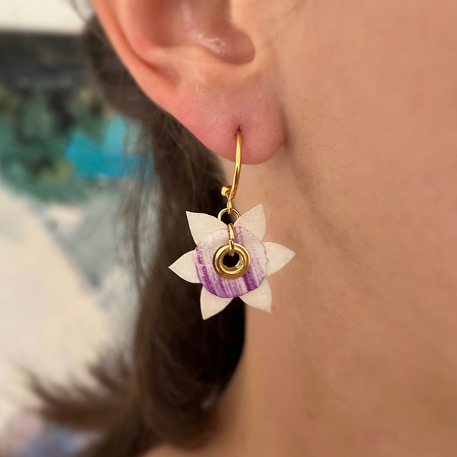 Boucles d'oreilles "Nymphéas Rose" en tissu upcyclé