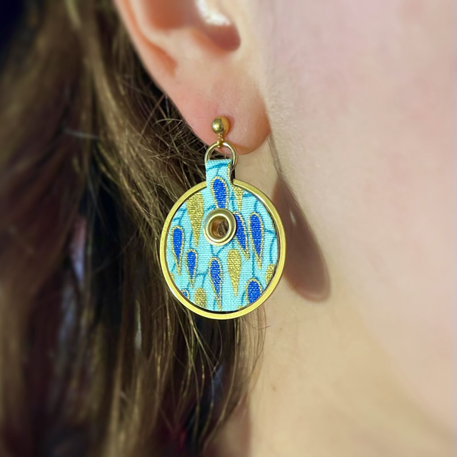 Sphère - Boucles d'oreilles en tissu bleu et doré
