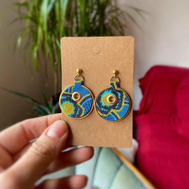 Sphère - Boucles d'oreilles en tissu wax bleu et doré