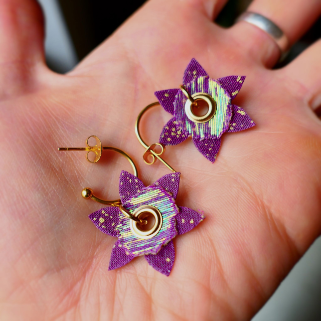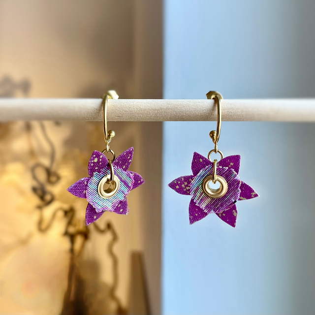 Boucles d'oreilles "Nymphéas " en tissu upcyclé