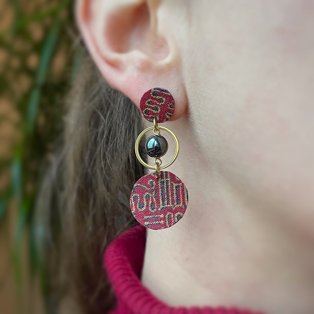 Trio Cercle - Boucles d'oreilles en tissu rouge et doré